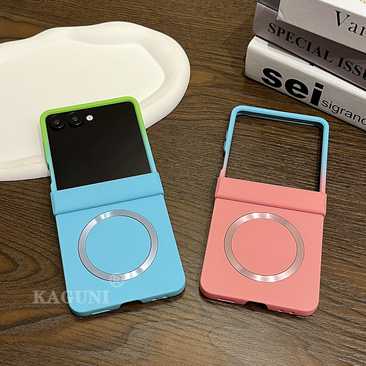 適用於三星Z Flip7/6/5/4/3漸變磨砂膚感磁吸鉸鏈全包保護殼