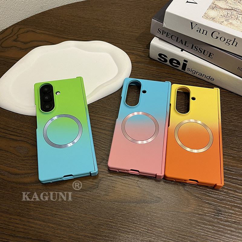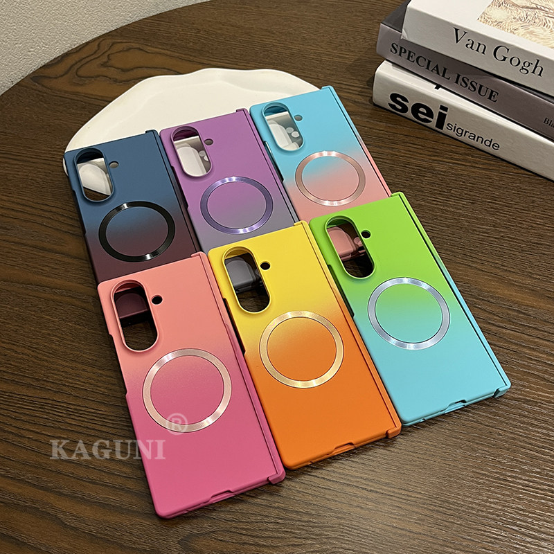適用於三星Z Fold7/6/5/4/3漸變磨砂膚感磁吸鉸鏈全包保護殼